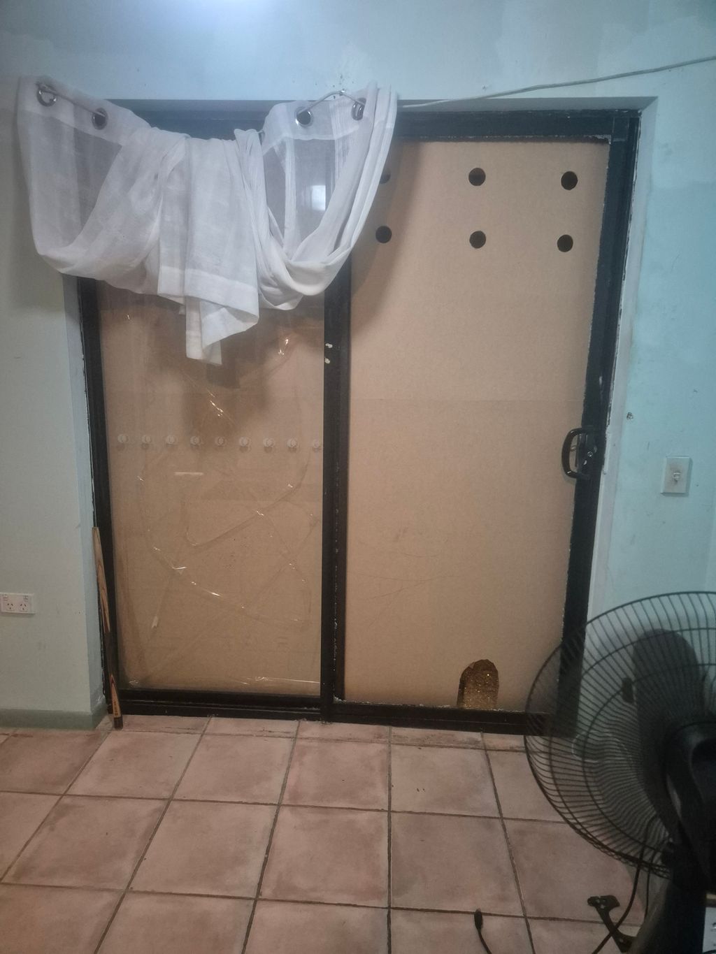 Board up double glass sliding door