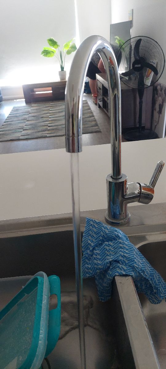 Mesh filter in kitchen tap was missing, water sprayed everywhere.
