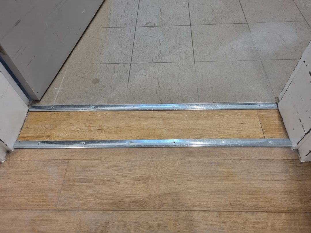 - Supplied and installed aliminium transition strip at the join between old and new viny!